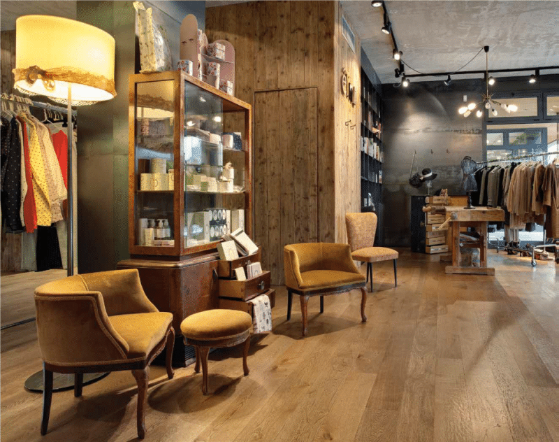 Exemple de réalisation : Pose flottante à l’Anglaise à joints perdus, d’un parquet à structure contrecollée essence Chêne, vieilli bosselé,
