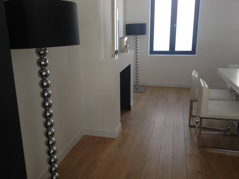 Exemple de réalisation : Pose d’un parquet contrecollé en chêne verni collé en plein sur chape à Bordeaux La parqueterie située