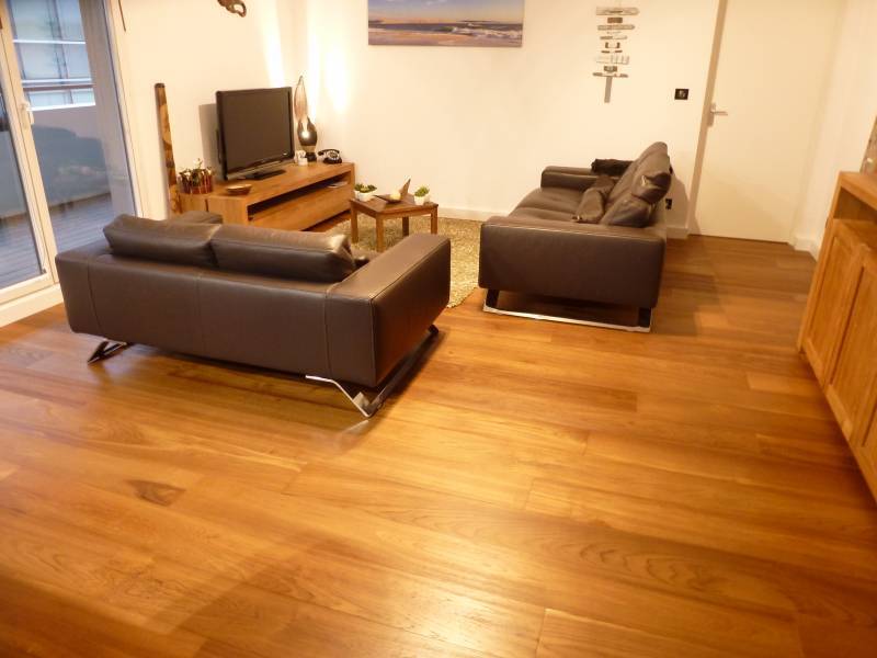 Exemple de réalisation : Pose à l’ Anglaise d’un parquet contrecollé en teck 14 x 190 x 1900 mm verni